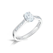 Oval Cut 4 Claw Diamond Ring With Grain Set Shoulders